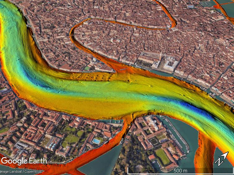 “The data also allows us to identify areas with large dunes at the bottom and adjacent erosion sites that document the most dynamic points in the deep lagoon, where it’s important to cyclically repeat these studies to quantify the movement of sediments,” head of the study Fantina Madricardo says in the press release (translation mine.)